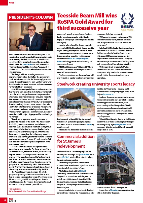 PRESIDENT’S COLUMN Teesside Beam Mill wins