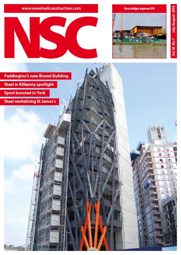 Vol 26 No 7 July/August 2018 www.newsteelconstruction.com New bridges improve A14 Paddington’s new Brunel Building Steel in Kilkenny spotlight Sport boosted in York Steel revitalising St James’s