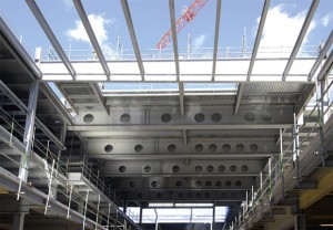 External cladding costs account for around 25% of the total cost of a building, compared to around 10% for the steel frame on a typical multi-story office block. The design team has to balance the costs between one element and another. Lighter beams are usually deeper which results in a taller building and higher cladding costs – invariably shallower heavier beams are the best option. “You throw pennies at the steel frame to save pounds on the cladding,” comments Mr Swann.