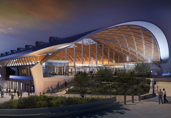 The £571M station will eventually link Birmingham with London, Manchester and Leeds via a new “Y”-shaped network of tracks for 225mph trains, as part of the £106bn national project.