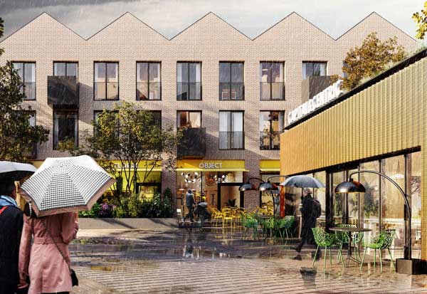The project’s plans include 85 apartments, 12 family homes, over 1,850m2 of retail, restaurant and bar space, a community hub, an events pavilion and a new public square.