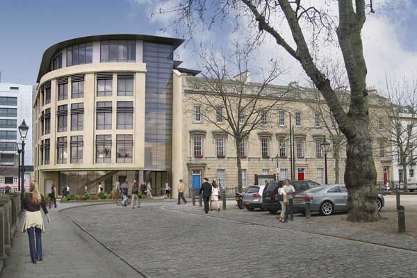 Combining a retained façade and a renovated Georgian terrace, the completed 66 Queen Square office project has enhanced a previously neglected historic part of Bristol.