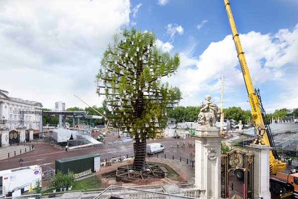 A spectacular 21m-tall steel sculpture, known as the ‘Tree of Trees’ featuring 350 British native trees was unveiled outside Buckingham Palace as a …