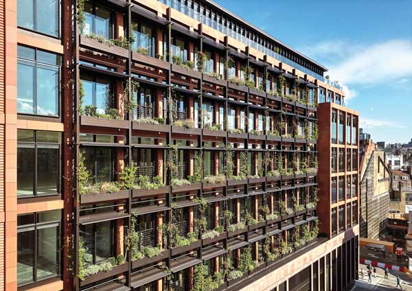 Incorporating a green wall, a seven-storey BREEAM ‘Excellent’ commercial building has been constructed directly above the Bond Street Elizabeth Line western ticket hall.