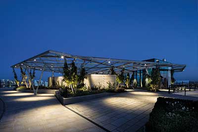 With its modern steel and glass design, combined with the natural green space of the rooftop garden, the structure provides a welcome contrast to the surrounding City environment.