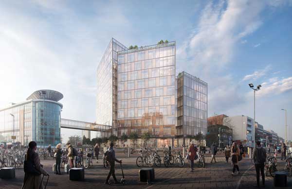The focal point for the development is a new 15,000m² building that appears as a series of interlocking glass volumes, which sits next to two existing buildings that will be refurbished.