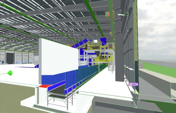 The second area to be erected was the 52m-wide MRF, the zone that will house Hallenbeagle’s processing equipment, followed by the RTS (where the collected waste arrives).
