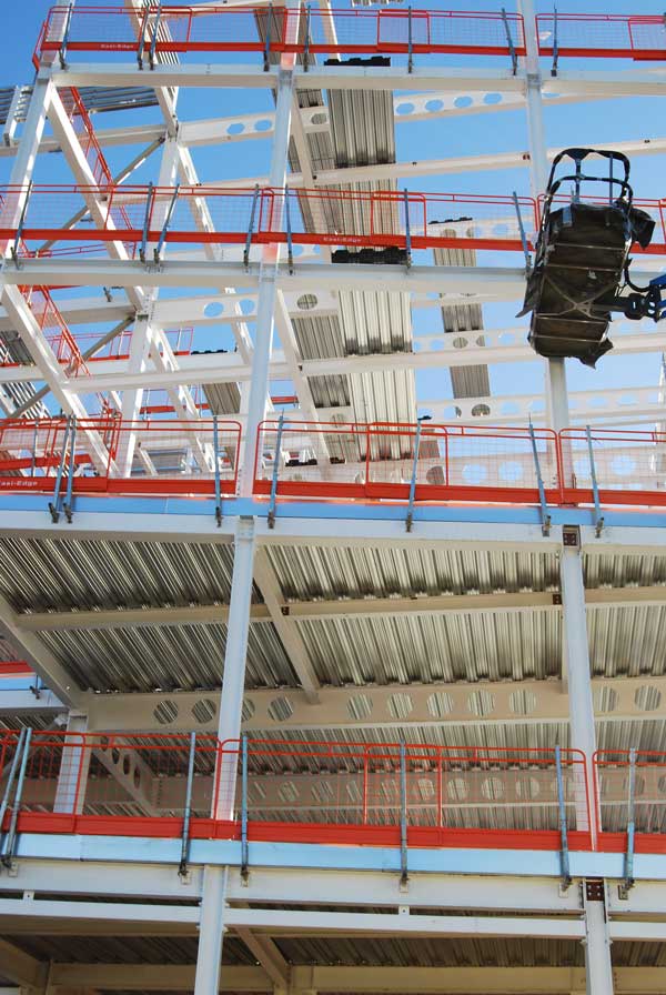 Installed in sections that weighed up to 15t each, the core’s lift shaft was the project’s heaviest item to be lifted into place, and required the use of a 160t-capacity mobile crane. For the steel erection, Billington Structures used a smaller 90t crane, as the heaviest members are column sections weighing 1.2t.
