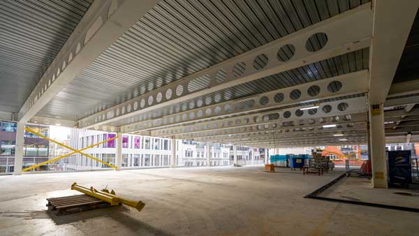 Chosen as the most efficient solution, a series of Westok cellular beams, up to 20m-long, radiate outwards from the core.