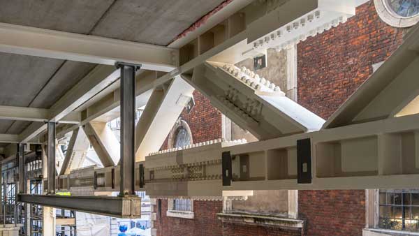 Dating from the 1880s and originally from one of the site’s previous buildings, which were demolished before the station entrance works began, the façade was carefully dismantled, stored away from site and will be installed later in the programme.