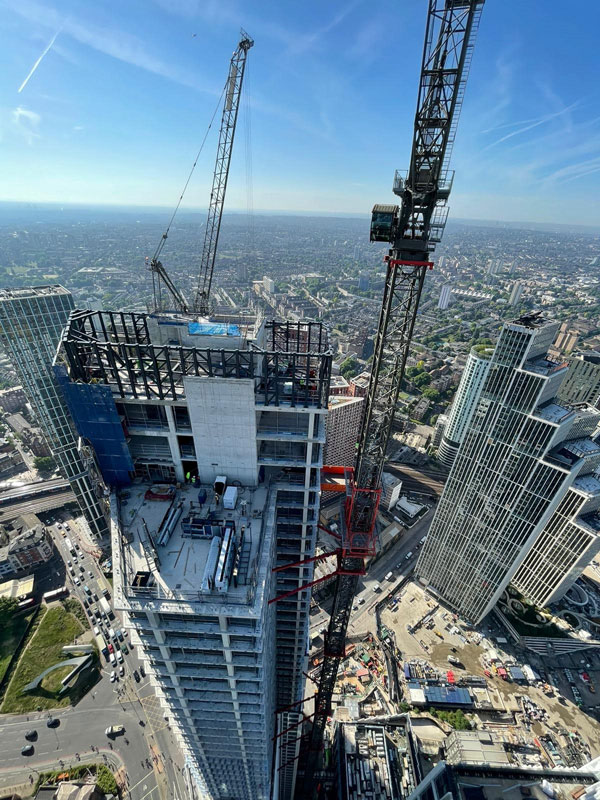 Forming external rooftop plant enclosures, high-level steelwork erection has been completed on two of London’s tallest residential towers.