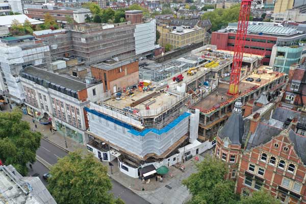 “The store was demolished and replaced with two newer structures in the 1970s and 80s. We have retained approximately 30% of these buildings and infilled and extended areas with a new steel frame, while also constructing two additional floors to the footprint,” said ISG Project Director Raymond Faulks.