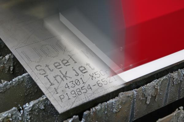 Inkjet marking leaves a mark without heat distortion. Marking speeds are up 20 m/min, which makes it the fastest marking option available. Inkjet marking is mostly used for large data sizes and a high amount of characters. However, inkjet markings are not permanent and disappear after shot blasting, galvanizing or painting.
