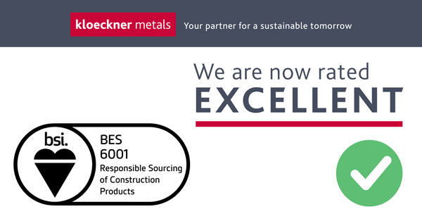 Kloeckner Metals UK has achieved the BES 6001 ‘Excellent’ certification rating for its Leeds, Westok, Thurrock and Dudley sites, which allows the company to demonstrate that its products are made with constituent materials that have been responsibly sourced.