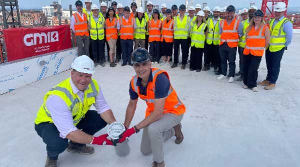 Developer Bruntwood SciTech has celebrated the topping out of its prestigious office scheme at No.3 Circle Square in Manchester.