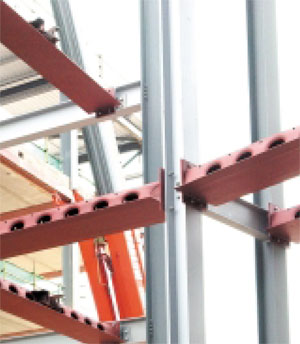 Beam-to-column connections are designed using the rules for Wind-Moment connections in the BCSA/SCI Joints in Steel Construction series. Deltabeam is a cellular welded box section with integral support ledges and punched webs which act compositely within the floor zone, as a support beam to flat slab construction.