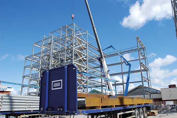 Steelwork contractor Leach Structural Steelwork is erecting both building simultaneously, using two 80t-capacity mobile cranes.
