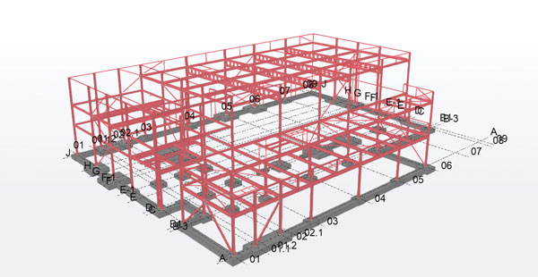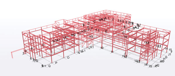 Much of the main block features columns spaced at 7.2m centres, with internal members positioned within a central corridor that separates the building’s two rows of classrooms.