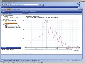 • Results (Figure 6): allows user to plot resistance-displacement curve and time-history curves for all output parameters (left & right support reactions, midspan displacement, velocity and acceleration, mid-span plastic strain, left & right support plastic strain, ductility ratio)