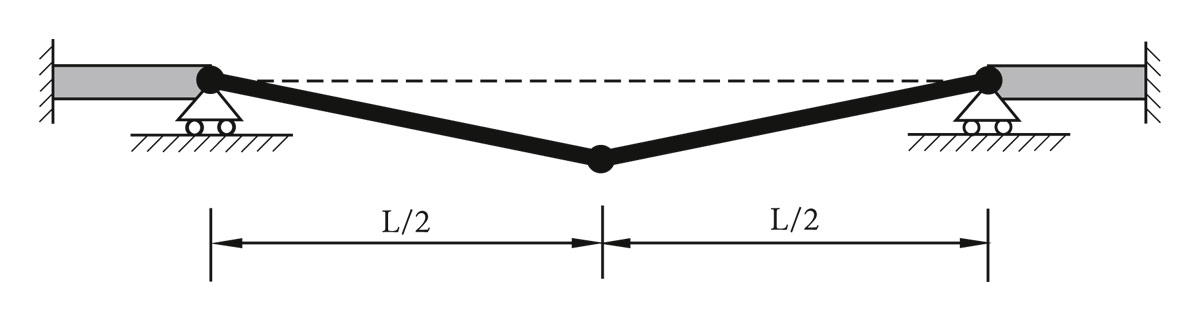 - Static member failure is associated with a three-hinge plastic mechanism for the case of non-zero rotational support stiffnesses (Figure 2).