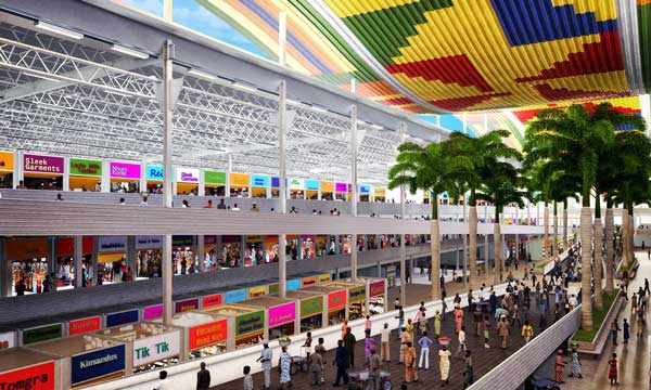 The market will feature 6,500 market spaces to lease, 5,400 cold stores, 800 kiosks, 50 restaurants, 210 stalls for fishmongers and butchers, 40 livestock stalls, a police station, fire station, post office and a hospital.
