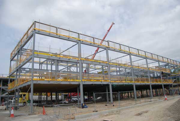 Elland Steel completed the steel erection for the two-storey school building in 10 weeks, and are now installing 8,000m² of precast flooring planks, along with precast staircases.
