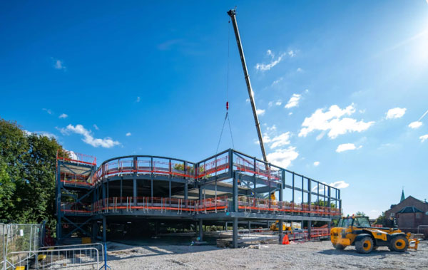 The steel frame for the Prestwich Travel Hub in Greater Manchester has been completed by Hambleton Steel.