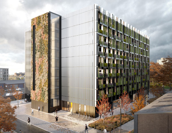 Located in Ancoats, Manchester, the hub will be an eight-storey multi-storey car park with space for 406 cars, 150 bicycles, 30 car shares, a parcel delivery zone, café and public realm.