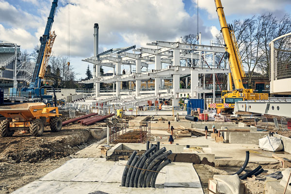 Forming part of Marylebone Cricket Club’s (MCC) ongoing masterplan to redevelop the world-famous and historic Lord’s Cricket Ground, two new steel-framed stands are currently under construction.