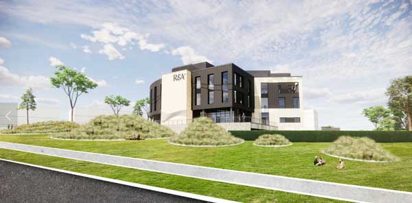 Being built at St Andrews West, a large mixed-use development on the outskirts of the town, the HQ is a four-storey, state-of-the-art, steel-framed structure aiming to achieve BREEAM ‘Excellent’.
