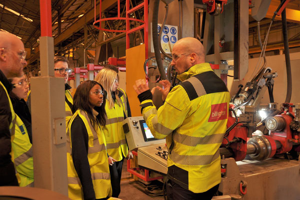 The graduates were given the opportunity to learn about Billington Structures’ production process for steel construction and were also able to see the steel processing and profiling services provided by Shafton Steel Services.