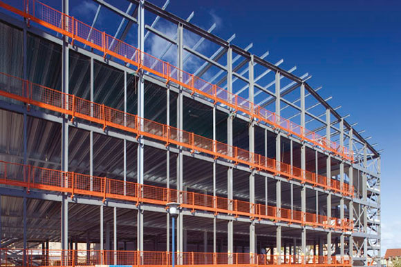 Systems, such as the Easi-edge protection on this hospital project in Sunderland, are routinely put in place during steel erection.