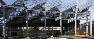 “A north light roof was designed for the hall to allow natural daylight to easily penetrate the display area below,” explains Ivor Robinson, Contracts Manager for Bourne Special Projects (BSP). “However, with the roof being radial in form, this arrangement means the roof slopes in a number of directions and we had to design some time- consuming connections.”