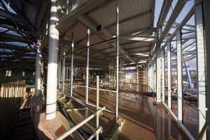Designing a large open long span structure isn’t necessarily a complicated procedure, but when there is also little room for bracing, another arrangement has to be found. Working on the steel frame AKS Ward conducted a 3D analysis to determine the wind loading and where best to locate bracing.