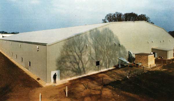 The building contains approximately 300 tonnes of steelwork and, complete with cladding, ventilators, doors and windows (but excluding foundations and floor slab), was designed, fabricated, erected and clad in approximately twenty-four weeks at an approximate cost of £100,000 (approximately 130p per sq.ft plan area). Previous experience of this type of frame combined with an existing computer programme for analysis enabled Conder to achieve this programme.