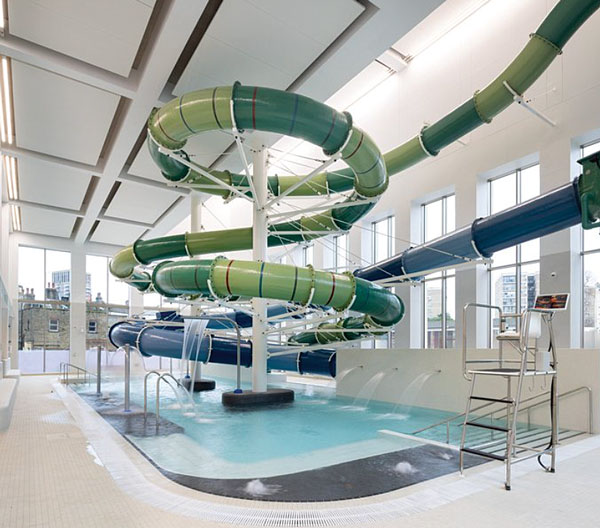 On track to achieve a BREEAM ‘Outstanding’ rating, the multi-storey hub is one of the UK’s largest leisure centres and includes four swimming pools, a luxury spa, a six-court sports hall, an indoor five-a-side football pitch, a gym, dance and spinning studios, squash courts and community spaces.