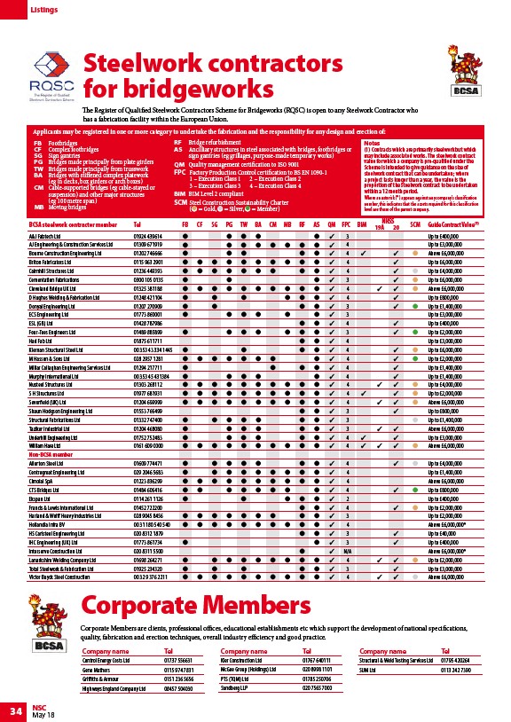 BCSA steelwork contractor member Tel FB CF SG PG TW BA CM MB RF AS QM FPC BIM NHSS SCM Guide Contract Value (1)