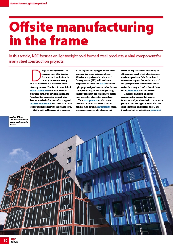 In this article, NSC focuses on lightweight cold formed steel products, a vital component for