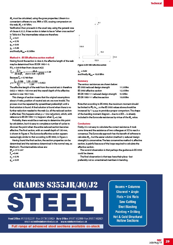 BS EN 1993-1-1 reduced design strength 9.5 kNm