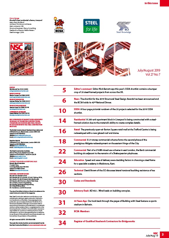 6 News The shortlist for the 2019 Structural Steel Design Awards has been announced and
