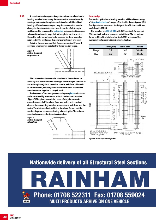 flange is 40% of the total and carries 5.2 MN in tension. The