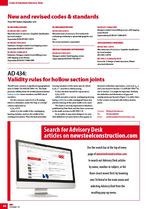 error in Table 7.8 of BS EN 1993-1-8. The table
