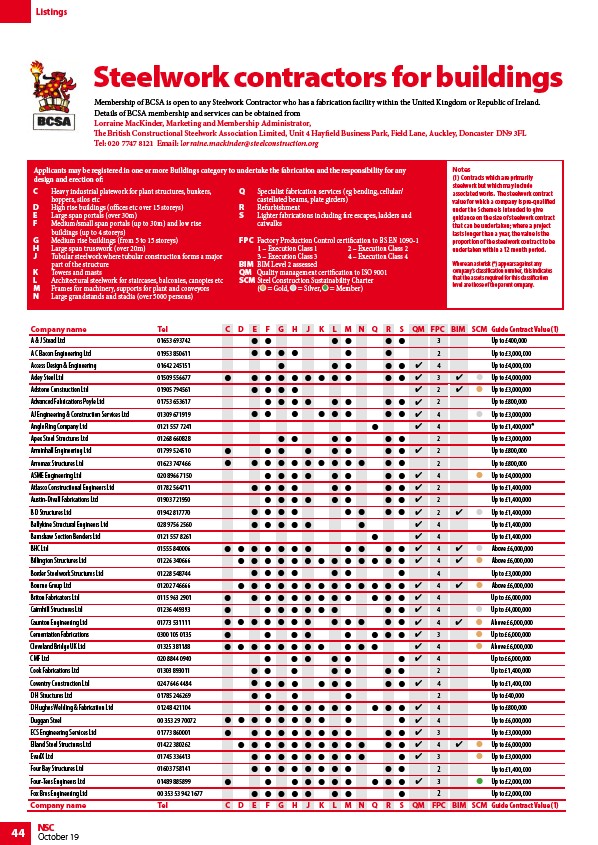 Membership of BCSA is open to any Steelwork Contractor who has a fabrication facility within the United Kingdom or Republic of Ireland.