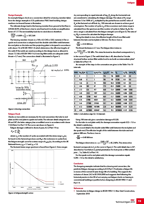 An example fatigue check on a connection detail for a bracing member taken