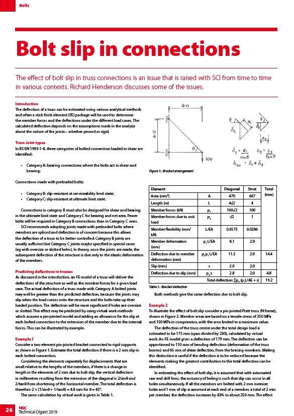 The effect of bolt slip in truss connections is an issue that is raised with SCI from time to time