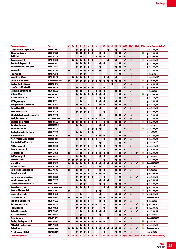 Structural Fabrications Ltd 01332 747400 l l l ✔ 3 ● Up to £1,400,000
