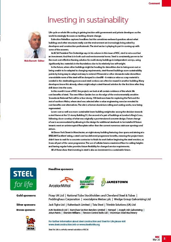 As BCSA President Tim Outteridge says in his column in this issue of NSC, steel is not a cost but