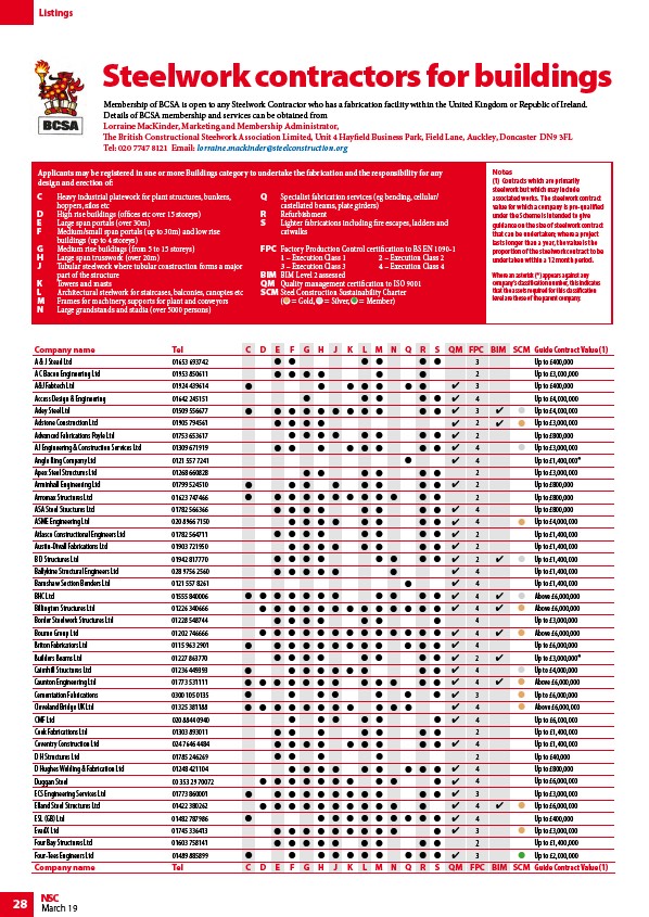 Membership of BCSA is open to any Steelwork Contractor who has a fabrication facility within the United Kingdom or Republic of Ireland.