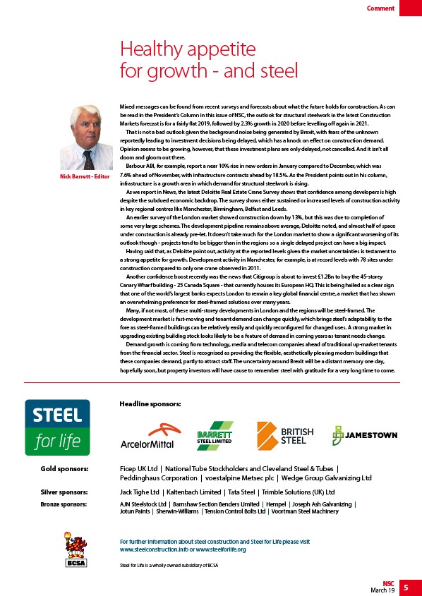 be read in the President’s Column in this issue of NSC, the outlook for structural steelwork in the latest Construction