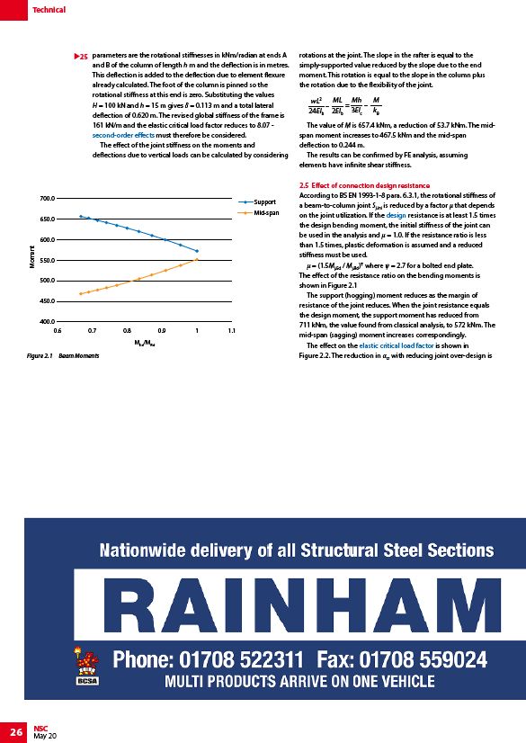 deflection of 0.620 m. The revised global stiffness of the frame is